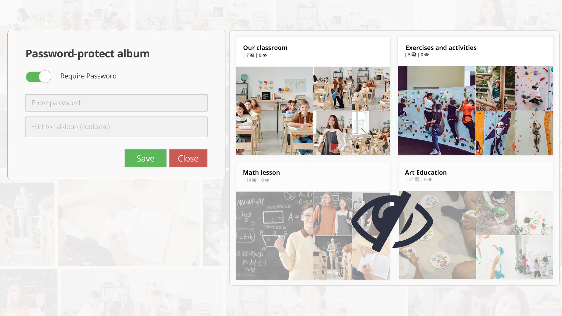 You can password-protect your albums and share your photos with only the people you want. You can also watermark your photos easily, protecting your intellectual property.